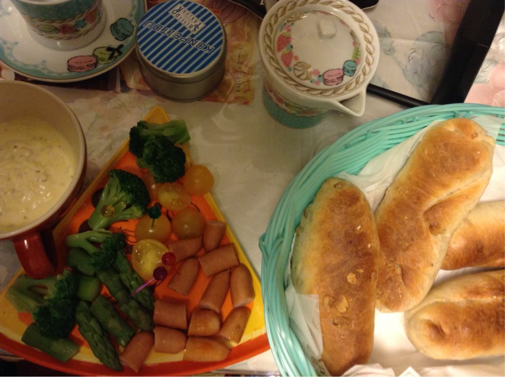 次にスイスのチーズフォンデュとフランスパン↓