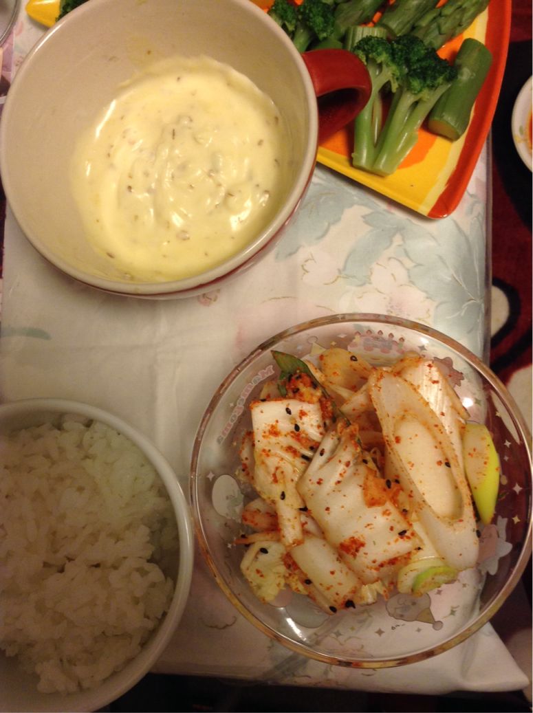 キムチは…使った唐辛子粉が少なかったのか、あまり赤くなってくれませんでした。味も微妙…再チャレンジしたいー。