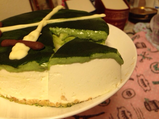 表面がダマになっちゃったのが悔しいところ…>_< そして上の抹茶ムースがゼラチン足りなかったのでゆるゆる状態です(汗)