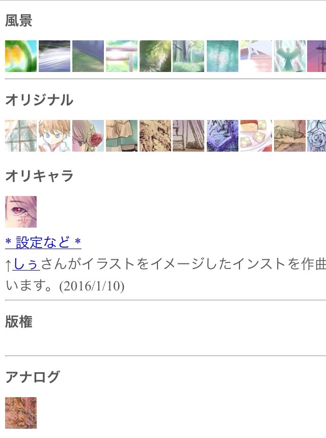 サムネイルをクリックするとページ切り替えなしでイラストが見れるので前より見やすくなったのではないかと思います〜(そして更新の方もしやすい 笑)。