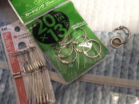 設置はカードリングと安全ピンを使ってテーブルクロスに固定。